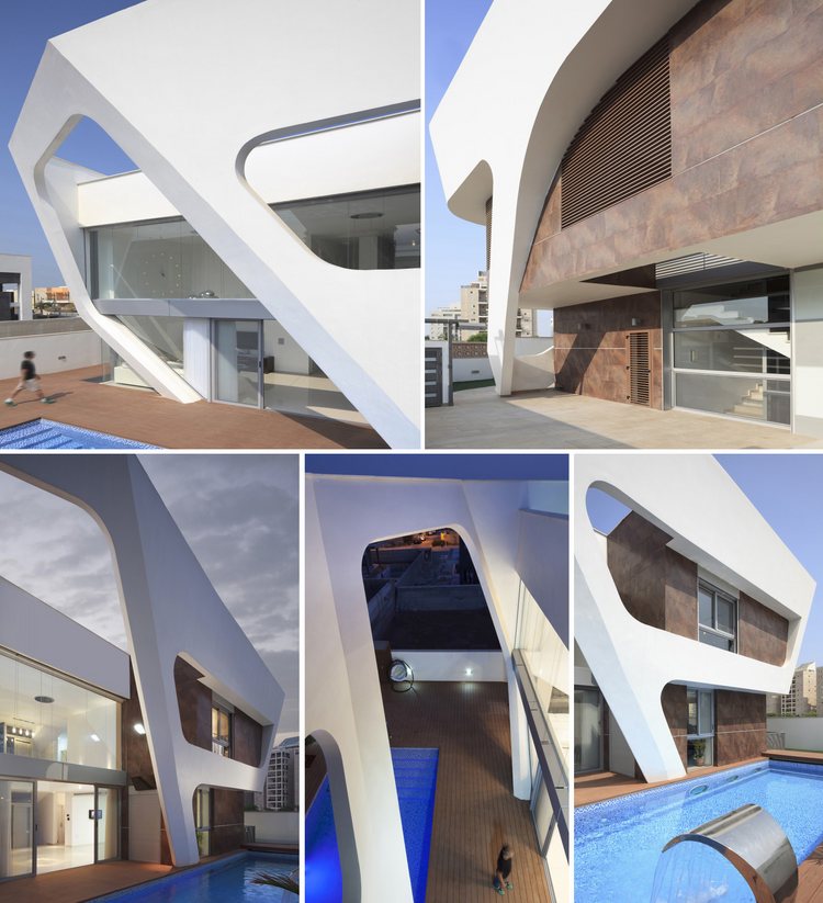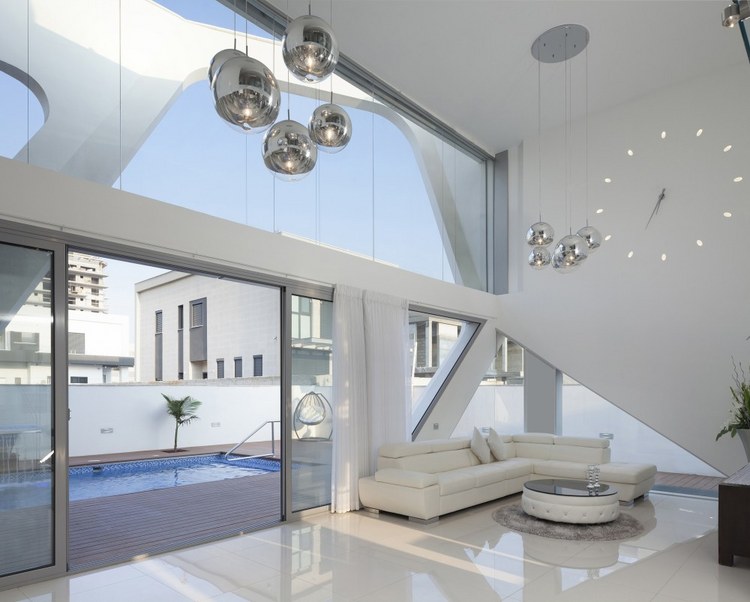 別墅設(shè)計,阿什杜德別墅(House in Ashdod)這幢獨特的現(xiàn)代別墅位于地中海沿岸的以色列西岸港市阿什杜德。這是一幢很有個性的建筑設(shè)計,白色立面的結(jié)構(gòu)仿佛是給住宅建筑裹上的外衣。兩層高的生活空間采用了大面積玻璃,室內(nèi)通透明亮。光束穿過白色立面的框架結(jié)構(gòu)在室內(nèi)形成各種形狀的光亮和陰影,如同一場光與影的游戲。