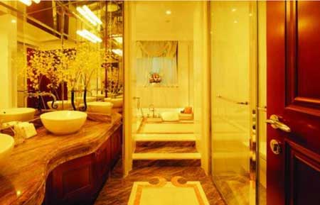 走近湯臣一品看似普通的建筑外墻,采用的卻是日本三菱的高科技納米技術,并單獨為湯臣一品設計外墻顏色,注冊為“湯臣Color”這一湯臣集團特有的顏色。而屋頂的設計前前后后竟然修改了36次,從這些外立面細節來看,湯臣一品的品位已讓人對其室內裝飾的豪華程度好奇不已。而樣板間的裝修也是極具考究,從廚房浴室里各式高檔的廚具潔具,到門口那價值20萬的德國純手工雕花銅門,都能體現出湯臣一品這個巨人的氣勢。